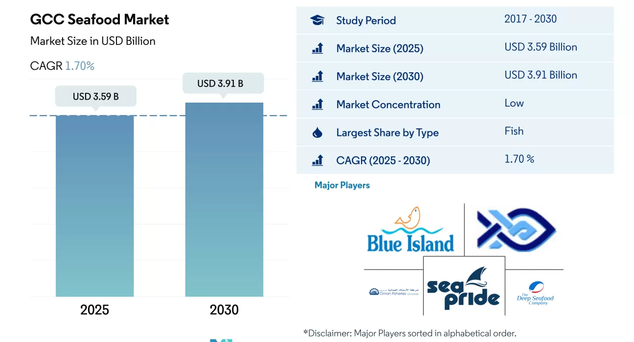 The Gulf Cooperation Council (GCC) seafood market is poised for notable expansion, projected to grow from an estimated USD 3.59 billion in 2025 to USD 3.91 billion by 2030, at a Compound Annual Growth Rate (CAGR) of 1.70%. This upward trajectory is significantly influenced by a blend of changing demographics, a rising focus on healthy eating, and crucial investments in regional infrastructure. Local production initiatives, supported by governments aiming for food security, are also playing a vital role in shaping the market’s future, reducing import reliance and striving for price stability.
